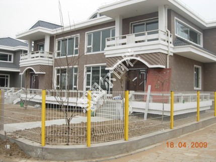 鐵絲網(wǎng)小區(qū)圍欄是由排焊機對鐵絲焊接成型,在經(jīng)過折彎、表面處理,立柱制作,安裝后形成。