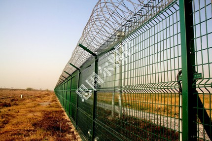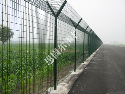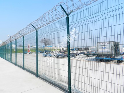 飛機(jī)場(chǎng)圍欄又稱作“Y型安全防御護(hù)網(wǎng)”,是由V型支架立柱,加強(qiáng)型焊接片網(wǎng),安全防盜連接件和熱鍍鋅刀片刺籠組成強(qiáng)度和安全防御性級(jí)別很高。近年來(lái),被廣泛應(yīng)用在機(jī)場(chǎng),軍事基地等高安全場(chǎng)所。