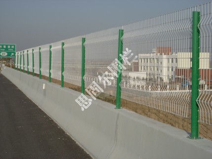橋梁護欄網又稱橋梁隔離柵,采用低碳鋼絲、鋁鎂合金絲編織焊接而成。主要用于對橋梁兩側的保護、防護等作用,本產品所采用的桃型柱、雙圈、波浪、雙邊護欄網等系列的專業產品 具有網身輕巧、造型新穎、美觀、耐用的特點。網片經高效浸塑,特別適合于橋梁防拋網,十年防銹拆裝方便,重復使用性好,可根據需要對圍網重新布局環保產品,最終可回收利用。