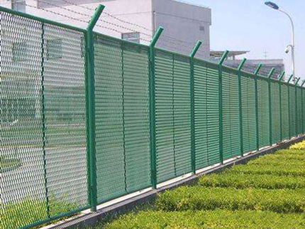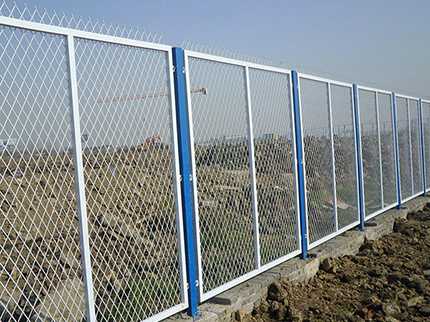 交通護欄網(wǎng)采用鋼板網(wǎng)、異型管、邊耳、圓管焊接成,連接附件與熱鍍管支柱固定。